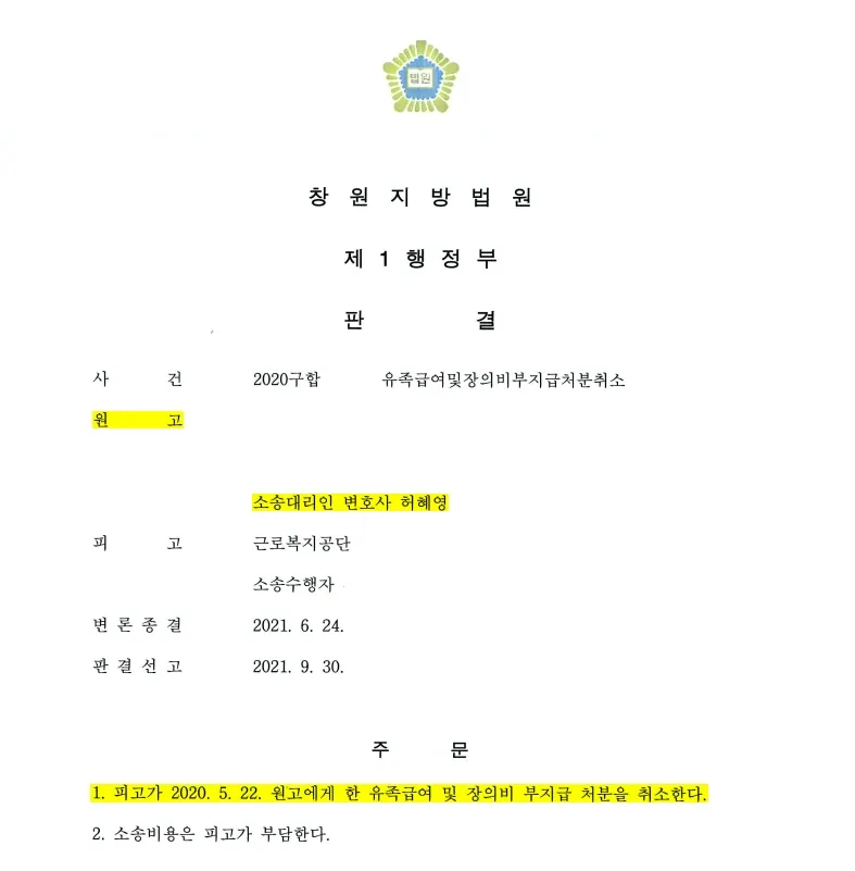 2020. 5월경 유족급여 및 장의비 부지급 결정통지